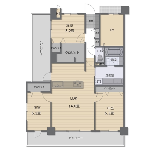 | ´Ö¼è¤êÆâÌõ | LDK:Ìó14.8Ä¡¡¢ÍÎ:Ìó5.2Ä¡¡¢ÍÎ:Ìó6.1Ä¡¡¢ÍÎ:Ìó6.3Ä¡/5³¬ | ||||