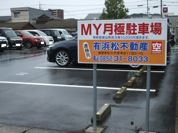 | 備考 | 【浜松不動産 管理物件】 ◎周辺には、タイヤ販売の昭和商事さん、美容室エル・クレールさんなどがあります。 ◎(有)浜松不動産から徒歩1分弱のところで、JR松江駅まで徒歩約10分です。 ◎敷地の北側と南側の2カ所に出入口があります。 ◎空き(予定)枠をご案内いたしますので、お気軽にお問合せください。 【注意事項】 ※表示の駐車料金は、消費税込みの金額です。 ※月の途中からの契約の場合、契約月の料金は日割り計算いたします。 解約月の料金は月割りのため日割りいたしません。ご注意ください。 |