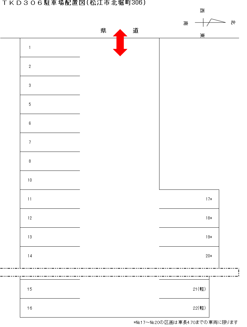 | 備考 | 《周 辺》 松江法務合同庁舎裏にあります 《総台数》 20台(普通車18台・軽自動車2台) ※一部、車長制限のある区画があります 《その他》 賃料には別途消費税がかかります 申込・契約については、月極駐車場検索アットパーキング経由にていつでも可能です。 専用URL https://www.at-parking.jp/search/shimane/matsue-shi/tonomachi/322366.html |