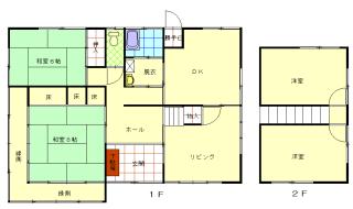 | 備考 | 南高近く ・まわりにスーパーマーケット・病院・コンビニ・バス停あります ・ペット相談可 室内犬1匹まで(猫は不可) ・ペット飼育の場合は礼金1ヶ月分必要 ・1F:LDK12帖・和室8帖・和室6帖 2F:洋間5帖・洋間5帖 ・照明器具付いています ・1Fの和室には広い縁側があり、収納にもなります ・2台目駐車場敷地外3000円 |