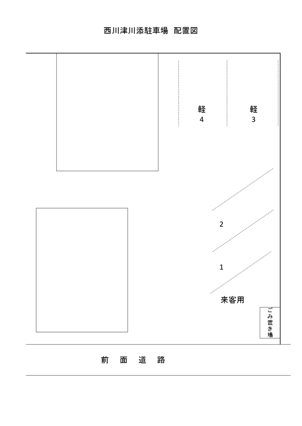| 備考 | ★☆ヤマト運輸松江北営業所近く、砂利舗装の駐車場です☆★ ◆全4区画に増台しました。 ◇2区画(1番、2番)は普通車駐車可能 ◇2区画(3番、4番)は軽自動車専用 ◆空き予定区画→【4番】 |