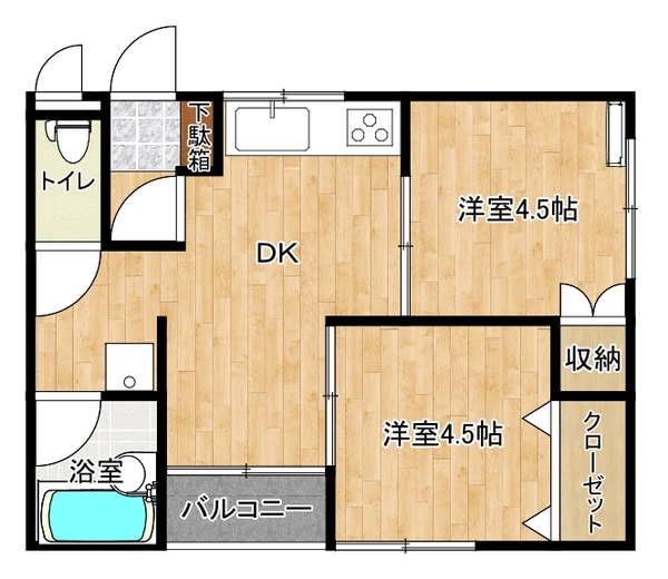 | 間取り | 2DK | 専有面積 | 37.26m² | 向き | 南東 |
